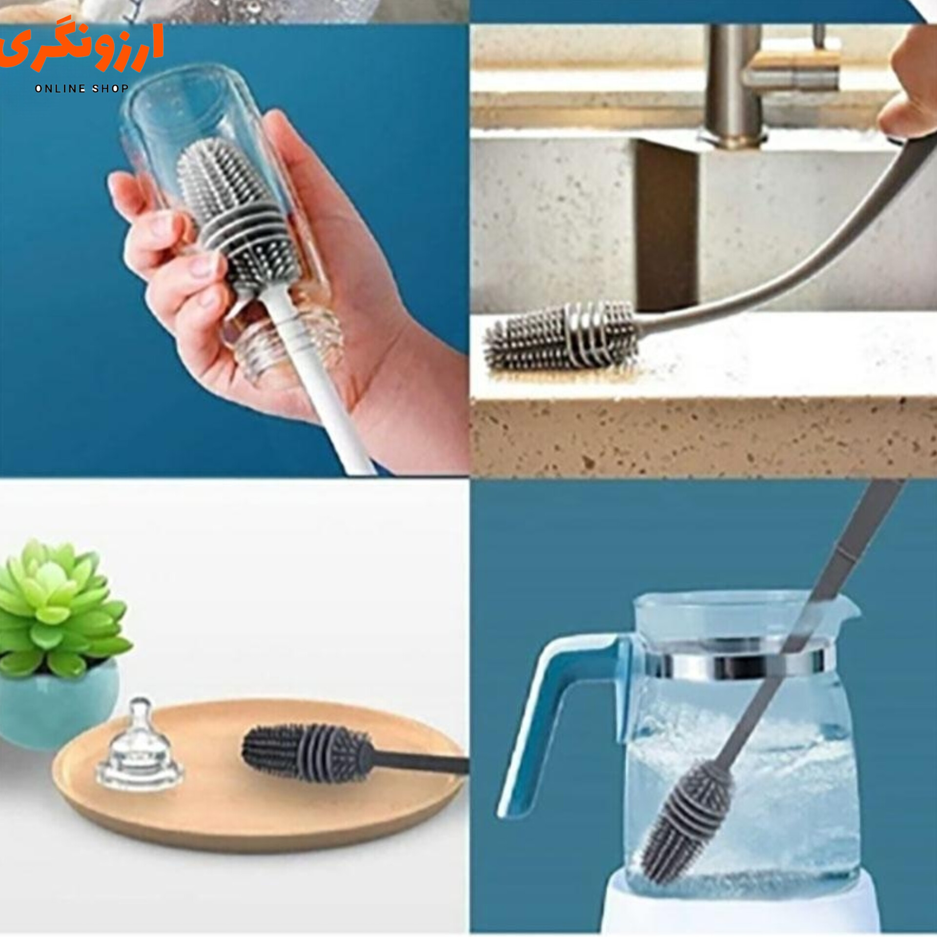 اگر شما هم با شستن داخل بطری ها مشکل دارید و مدت زمان زیادی صرف شستشوی آن می کنید تا تمام لک و رد نوشیدنی داخل آن از بین برود بهتر است از محصولات مناسب آن استفاده کنید. بطری شیشه شور سیلیکونی یکی از مدل هایی است که دارای طراحی مناسب و استانداردی دارد و شستشوی فضای داخلی بطری ها را برای شما به راحتی امکانپذیر می کند. این محصول دستگیره ی درازی دارد تا بتوانید بطری با هر ارتفاع دیواره را بشویید. سری فرچه ای آن نیز از جنس سیلیکون است تا هنگام استفاده دچار شکستگی و آسیب نشود و به دلیل تعداد بالایی سری کافی است تنها آن را داخل بطری بچرخانید.