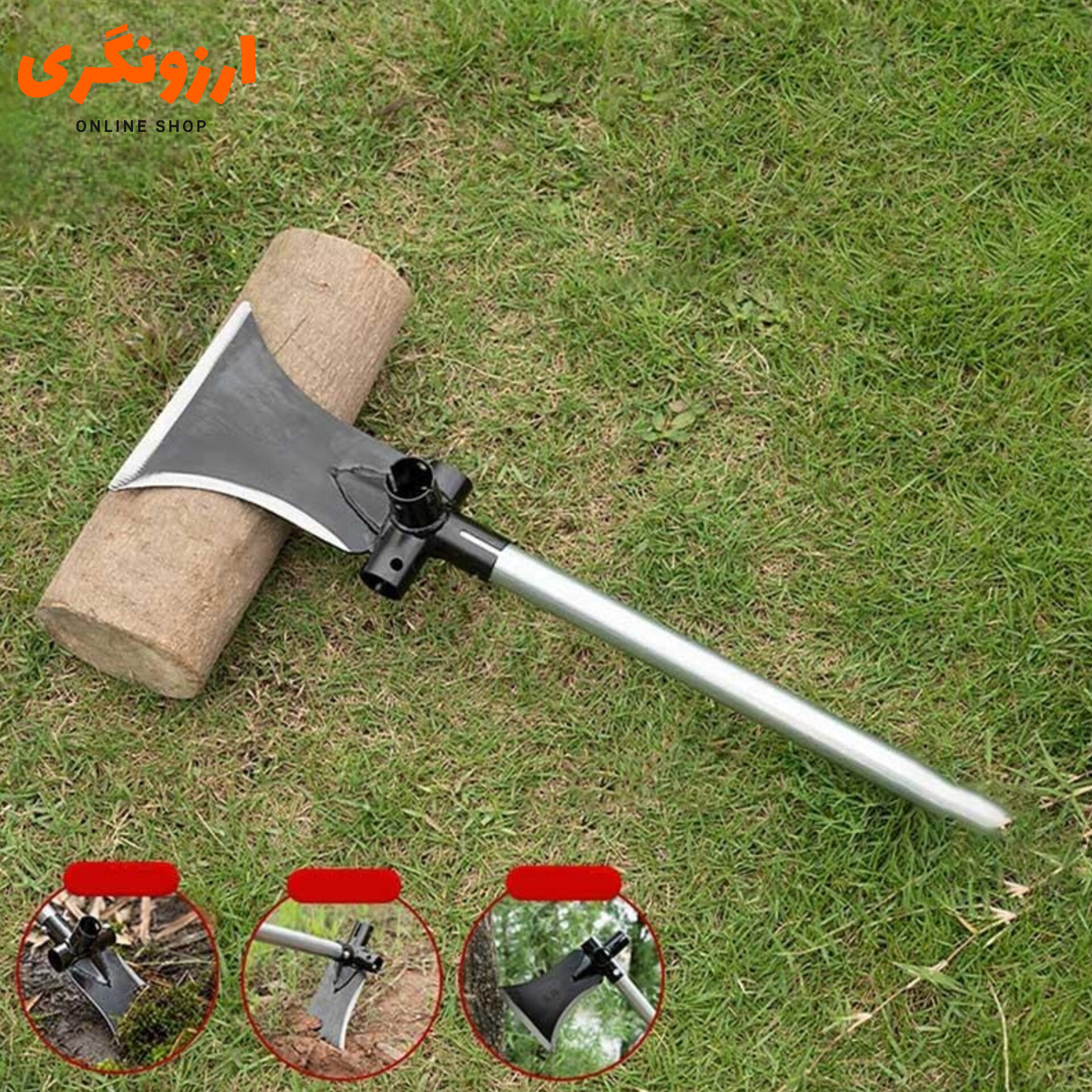 تبر 3 کاره فلزی دارای سری فلزی با جنس مقاوم و مستحکم می باشد که لبه های بسیار تیزی دارد و با استفاده از آن می تو انید چوب درخت و دیگر لوازم سفت و مقاوم را به راحتی تکه کنید. در پایین ترین قسمت سری تبر دسته ی ان متصل شده که دارای طراحی آرگونومیک با ارتفاع مناسب می باشد. ویژگی متمایز این محصول طراحی سری متفاوت آن می باشد. پایین ترین بخش آن به شکلی ساخته شده که از ۳ طرف می توان به آن دسته ای اضافه کرد و برای کاربردهای مختلف از آن استفاده نمود. با توجه به اینکه جزو لوازم سفر می باشد ابعاد مناسب و وزن سبکی دارد و برای همراه داشتن و جابه جایی در سفر بسیار مناسب است. اما این مشخصات به هیچ وجه باعث کاهش کارایی تبر نشده و بدون مشکل می توانید از آن برای انجام کارهایتان استفاده کنید. دقت داشته باشید که دسته از بدنه ی تبر جدا می شود و می توانید زمانجابه جایی یا در صورت کمبود فضا آنها را از یکدیگر جدا کنید تا جای دادن آن به راحتی انجام شود.