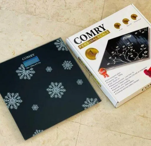 ترازو وزن کشی کومری به شکل مربع است که صفحه ی رویی آن از جنس شیشه با ضخامت ۸ میلی متر می باشد. روی شیشه ی آن طرح های مختلفی وجود دارد که باعث ظاهر زیبای آن شده است و صفحه ای که مقدار وزن را نشان می دهد کاملا دیجیتالی می باشد. ترازو قابلیت وزن کشی تا ۱۸۰ کیلوگرم را دارد و منبع تغذیه آن یک باتری است. این ترارو ضخامت کمی دارد که ظاهر آن را بسیار جذاب کرده است.