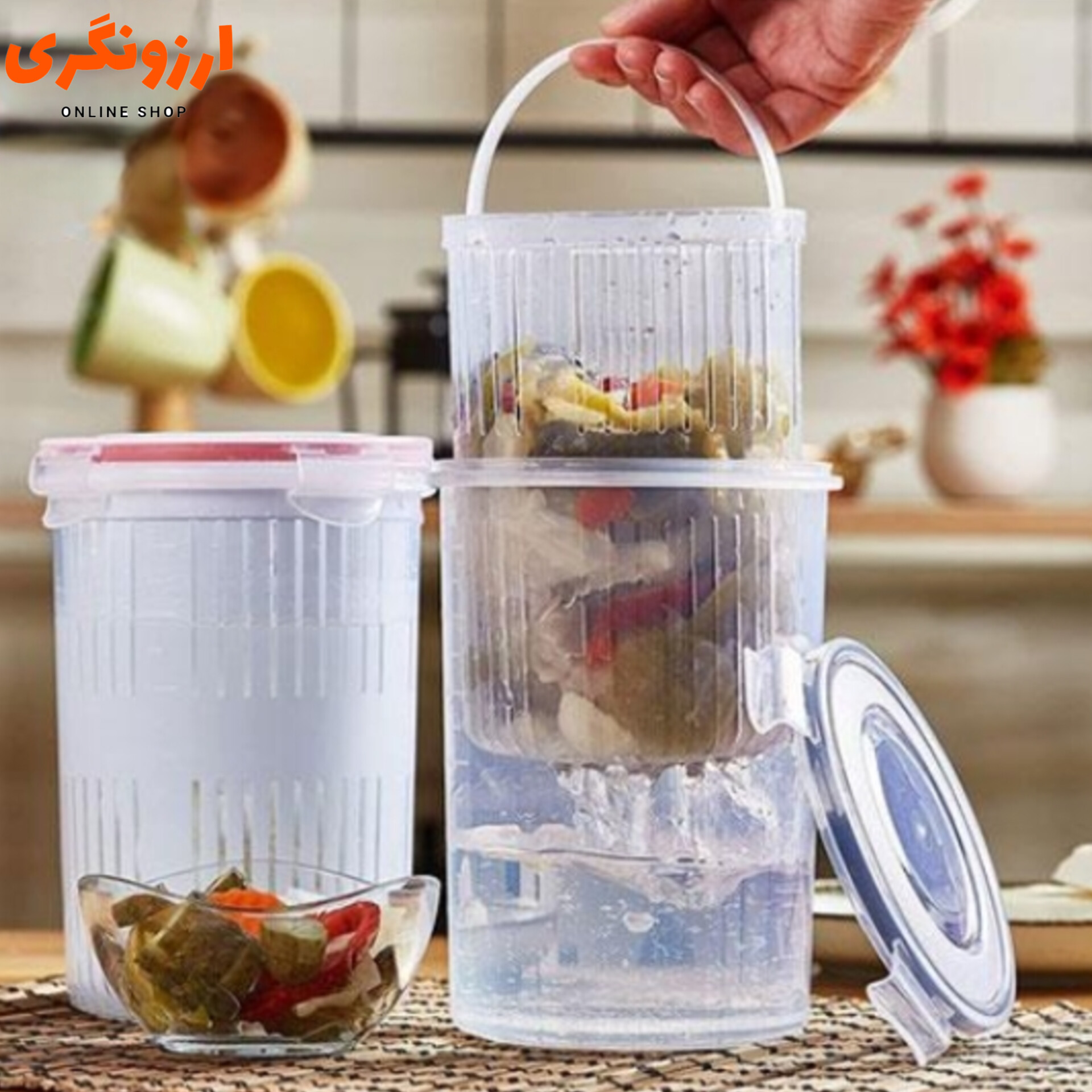افزایش ماندگاری مناسب برای نگهداری در یخچال و فریزر همراه با سبد استوانه ای مجهز به دستگیره تاشو جداسازی آسان ترشی از داخل سرکه دسترسی به محتویات درون ظرف به صورت کامل قابل استفاده برای نگهداری انواع ترشی ، خیارشور ، پنیر و … دارای درپوش برای محافظت از محتویات داخل ظرف در برابر آلودگی بدون نیاز به تماس قاشق و یا چنگال با احتمال وجود چربی یا رطوبت به سرکه (جلوگیری از خراب شدن ترشی)