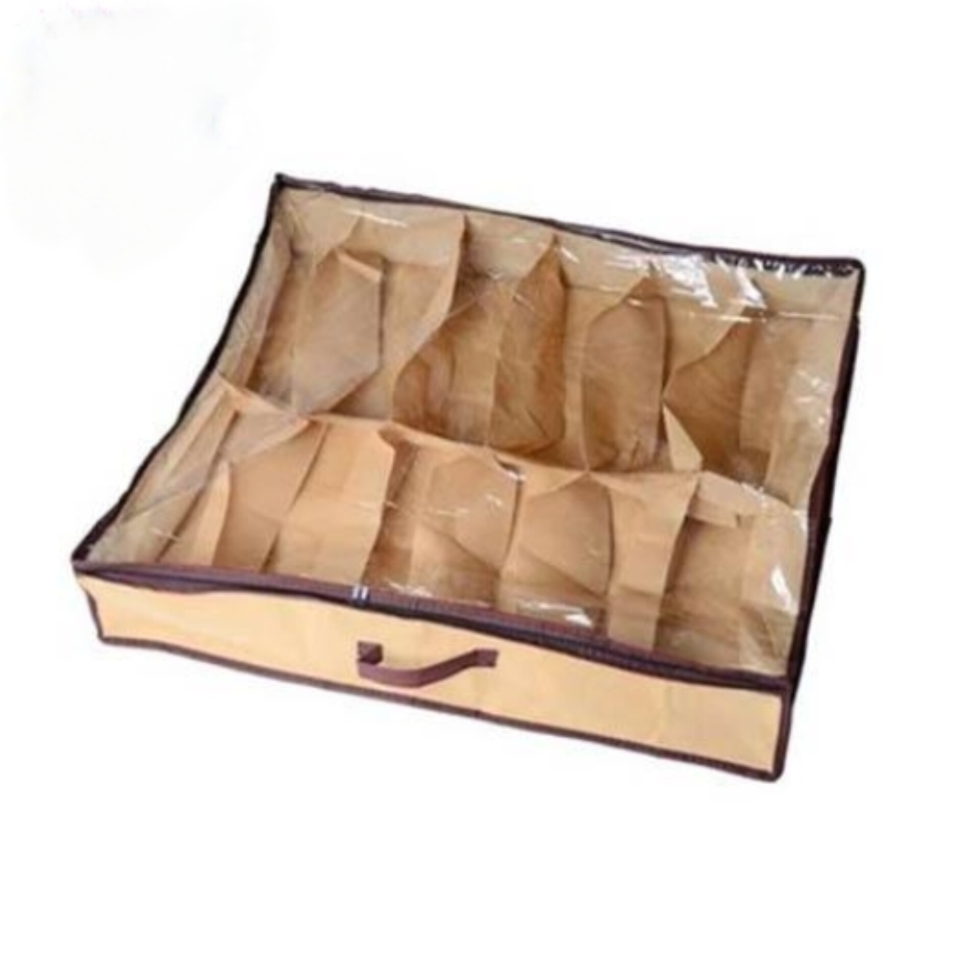 جا کفشی زیر تختی شوز آندر از یک باکس مستطیلی شکل از جنس پارچه ی مقاوم و با کیفیت ساخته شده است. فضای داخلی این باکس به ۱۲ قسمت مساوی تقسیم بندی شده که حد فاصل بین خانه ها نیز از جنس خود بدنه می باشد. ارتفاع این باکس به اندازه ای است که لوازم به راحتی درون آن جای می گیرد. این باکس به نوعی طراحی شده که مناسب قرار دادن زیر تخت می باشد و می توانید از این فضا برای نگهداری از کفش و دیگر لوازمتان استفاده کنید. مهمترین ویژگی این باکس دستگیره ای است که بخش جلویی ان قرار گرفته که به وسیله ی آن می توانید زمان نیاز جاکفشی را زیر تخت قرار داده و خارج کنید. خانه های داخل باکس به اندازه ای طراحی شده که در هر خانه یک جفت کفش به راحتی جای گرفته و به کفش نخواهد رسید. علاوه بر کفش می توان برای نظم دهی دیگر لوازم در منزل نیز استفاده کرد. با توجه به این مشخصات محصولی مناسب برای منزل های کوچک می باشد و می توان از فضاهای غیر قابل استفاده برای نگهداری از لوازم و کفش هایتان استفاده کنید.