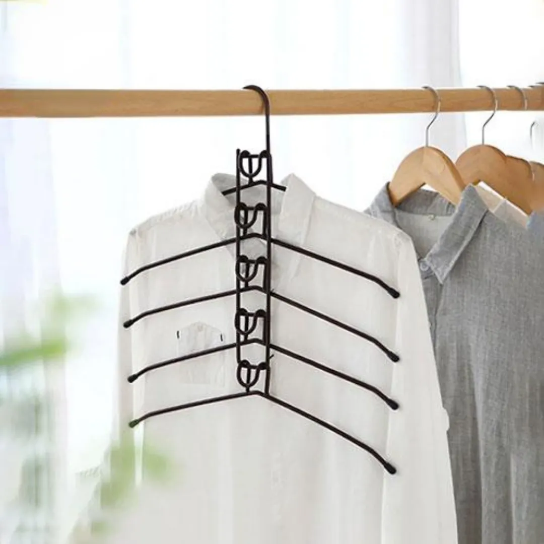 بسیاری از افراد مشکل محدودیت فضا برای آویزان کردن لباس را دارند . محدودیتی که ناشی از فضای اندک داخل کمد لباس و همچین تعداد زیاد لباس ها است که اگر بخواهید همه ی لباسهایتان صاف و بدون چروک در کمد آویزان شوند جای زیادی میخواهد که فضای محدود کمد پاسخگو نخواهد بود.این رخت آویز قادر است فضای داخل کمد شما را تا 5 برابر افزایش دهد.همچنین به شما کمک خواهد کرد تا لباس ها به شکلی منظم تر درون کمد لباس قرار بگیرند که این امر سبب سادگی در دسترسی به تمامی لباس ها ، جلوگیری ازپراکندگی و همچنین چروک شدن لباس ها می شود.