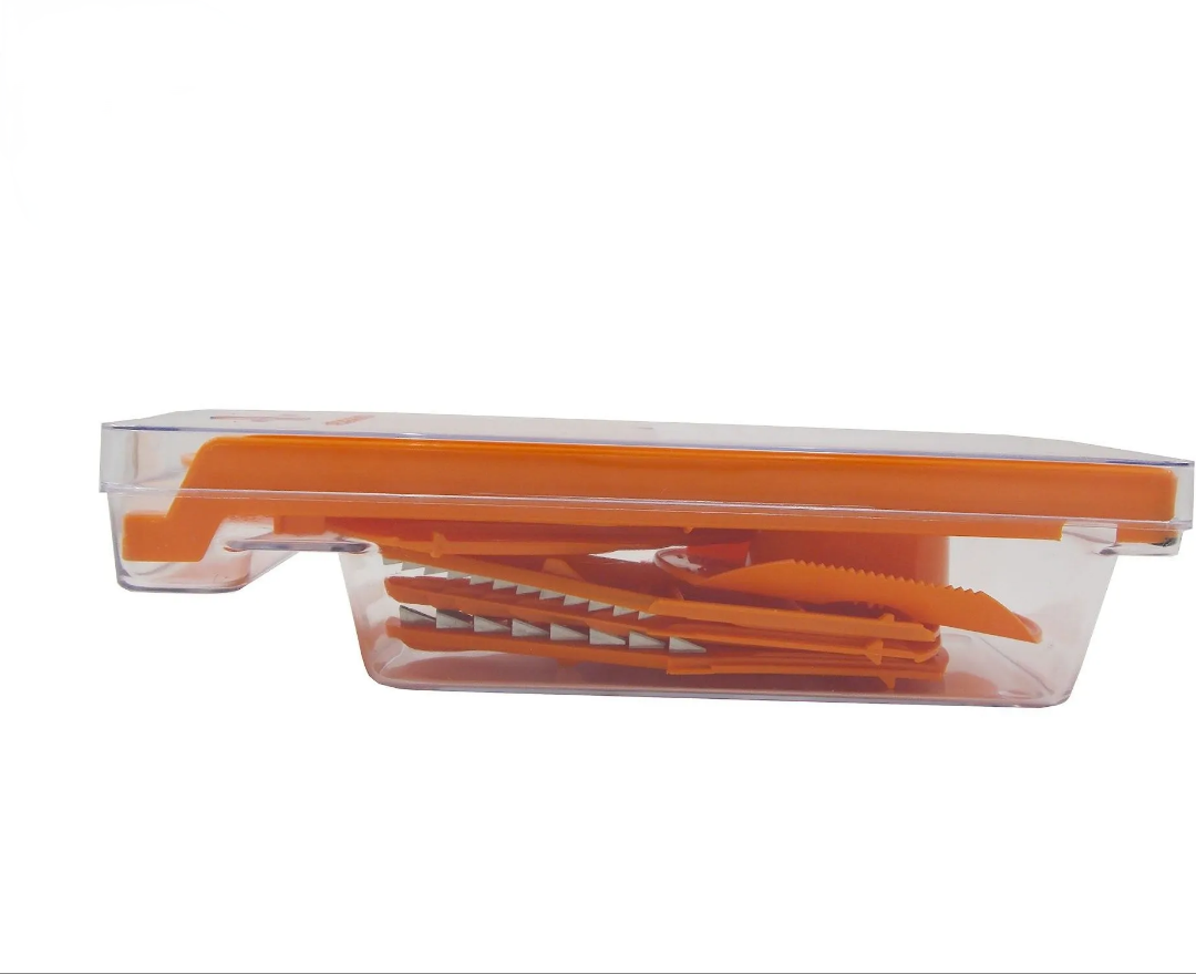 رنده اسلایس برونر دارای 10 نوع تیغه مختلف است که هر کدام برای کار خاصی مناسب هستند. تیغهها شامل تیغه خلال ریز، خلال درشت، ورق نازک چیپسی ، ورق ضخیم، نگینی ریز و نگینی درشت هستند. بنابراین با استفاده از این رنده می توانید تمامی نیازهای خود را درباره رندهکردن مواد غذایی برآورده کنید.