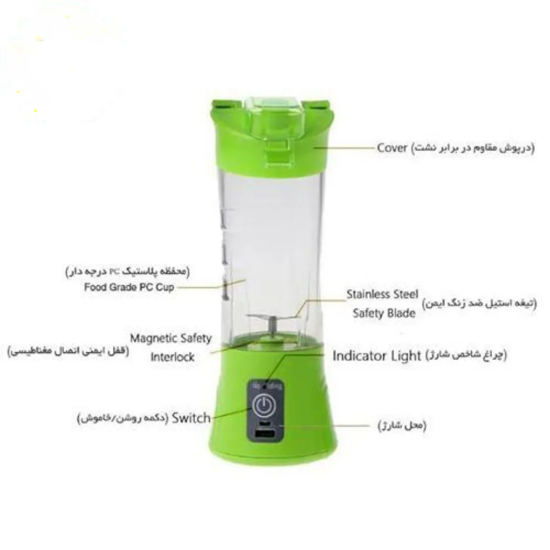 مخزن مخلوط کن شارژی مسافرتی به راحتی قابل شست و شو است و بعد از استفاده به راحتی با آب تمیز می شود. سرعت و تعداد دور چرخش شیکر و مخلوط کن برقی قابل تنظیم نمی باشد.