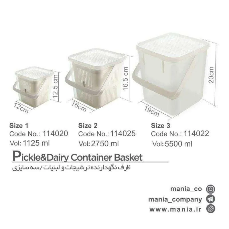 یکی از دسته ظروفی که در آشپزخانه به آنها نیاز دارید ظروف مختص نگهداری ترشیجات، خوراکی های کنار غذا مثل خیار شور و زیتون می باشد. همان طور که می دانید این دست از خوراکی ها باید در مایع مخصوص خود نگه داری شوند در غیر این صورت بعد از مدتی کپک می زنند. اگر هم درون مایعشان نگه داریم زمان سرو باید انها را مایع آن جدا کنیم. ظرف ترشیجات مانیا پلاس ۵/۵ لیتر یکی از مدل هایی است که دارای طراحی متفاوت می باشد که این دست از خوراکی ها را درون مایعشان نگهداری می شوند و زمان سرو می توانید سبد را از درون ظرف خارج کرده و از محتویات آن استفاده کنید.