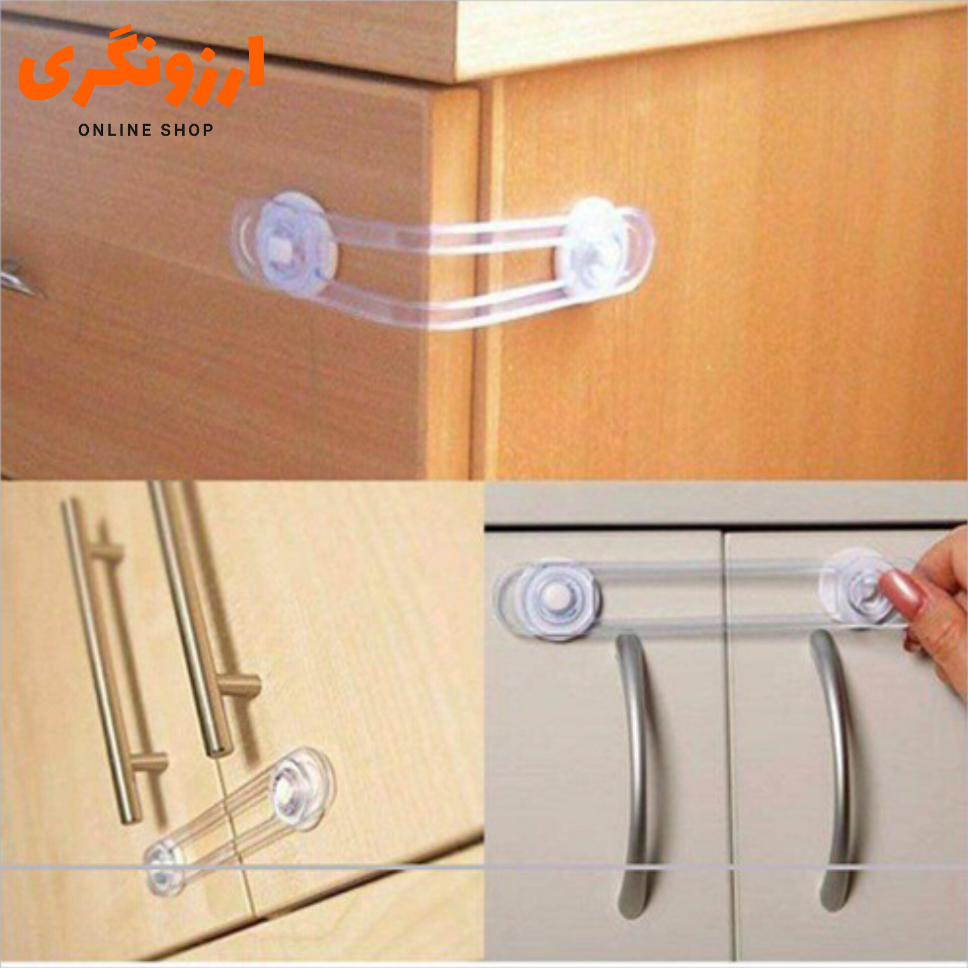 ابتدا دو عدد گیره آن را روی دو طرف درب کابینت نصب کنید و سپس بند آن را به دو طرف گیره ها بیندازید در اینصورت دیگر درب کابینت باز نمی شود.