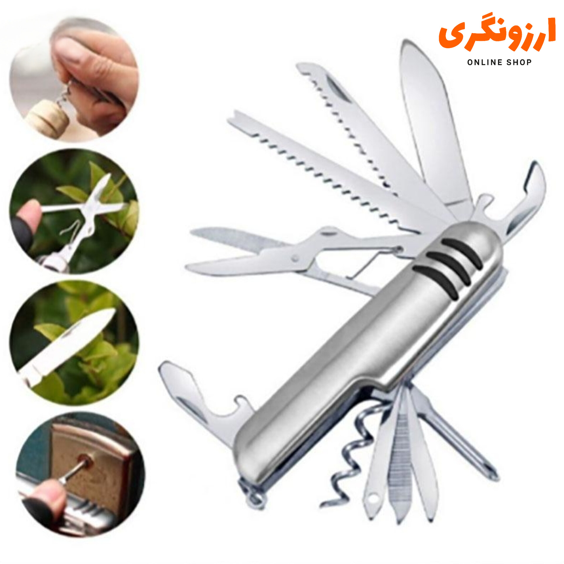 🛠️ **چاقوی چندکاره جیبی – ابزار همهکاره برای ماجراجویی و روزمره**اگر اهل سفر، طبیعتگردی یا حتی دنبال یک ابزار کاربردی برای کارهای روزمره هستی، این چاقوی چندکاره جیبی انتخابی هوشمندانه است. با طراحی فلزی و جمعوجور، مجموعهای از ابزارهای ضروری را همیشه همراهت داشته باش.ویژگیها: 🔪 تیغه برش تیز و مقاوم برای استفادههای مختلف ✂️ قیچی، اره، دربازکن، پیچگوشتی، سوهان و ابزارهای دیگر در یک بدنه 🍷 دارای دربازکن بطری و دربچوبی برای لحظات تفریحی 📦 طراحی جمعوجور و قابلحمل، مناسب برای جیب یا کیف 🌲 مناسب برای کمپینگ، کوهنوردی، سفر، تعمیرات خانگی و استفاده روزمره 🧰 بدنه فلزی بادوام با ظاهر حرفهایاین ابزار چندکاره نهتنها کاربردی است، بلکه با طراحی شیک و کیفیت بالا، حس حرفهای بودن را به همراه دارد. همیشه آماده باش، با یک ابزار که همهچیز را در خودش دارد.