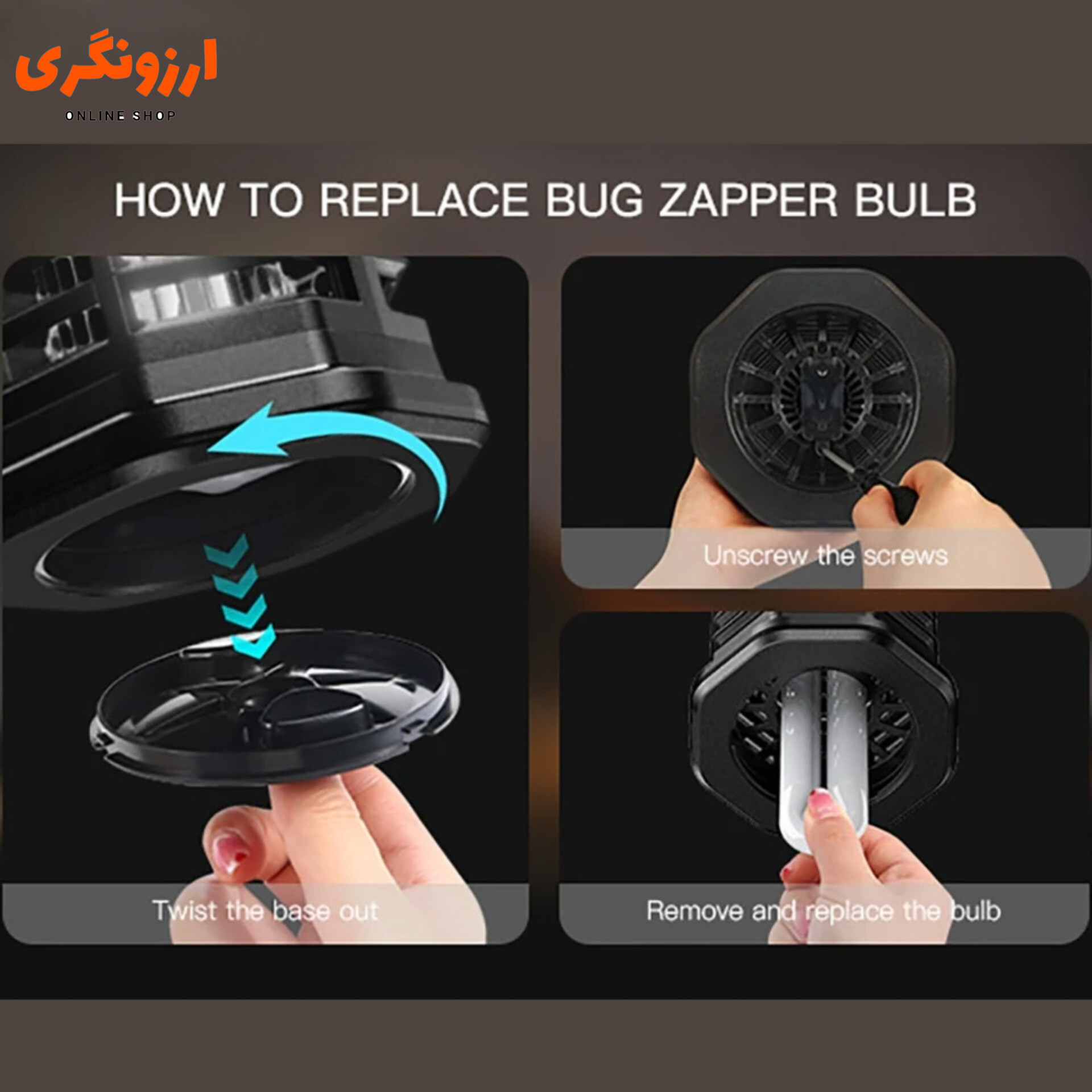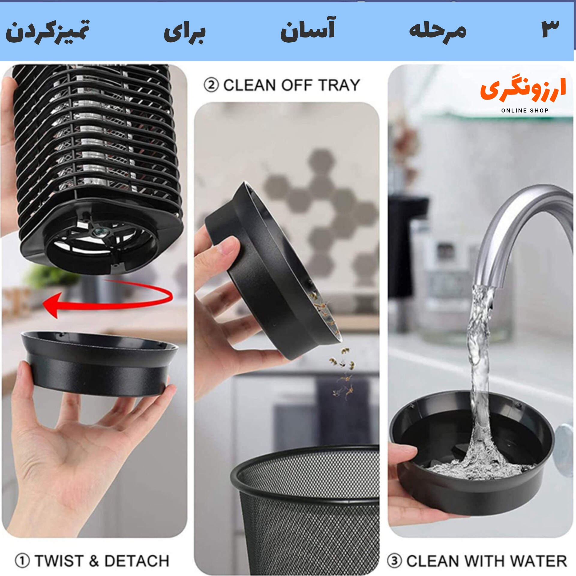 محصولی که خیال شما را از حشره ها و پشه ها راحت می کند. این محصول مناسب داخل خانه و بیرون خانه می باشد و در فضای کوچک و بزرگ قابل استفاده است. این محصول دارای موتور 360 درجه و لامپ UV پر قدرت می باشد که در هر صورت حشره ها را جذب کند. این محصول با تله لامپ 365 نانو متری قدرت بسیار زیادی در جذب حشرات دارد. قابلیت استفاده روی میز و زمین و قابل آویزان کردن می باشد. دارای سینی جدا شونده برای تمیز کردن حشرات می باشد.