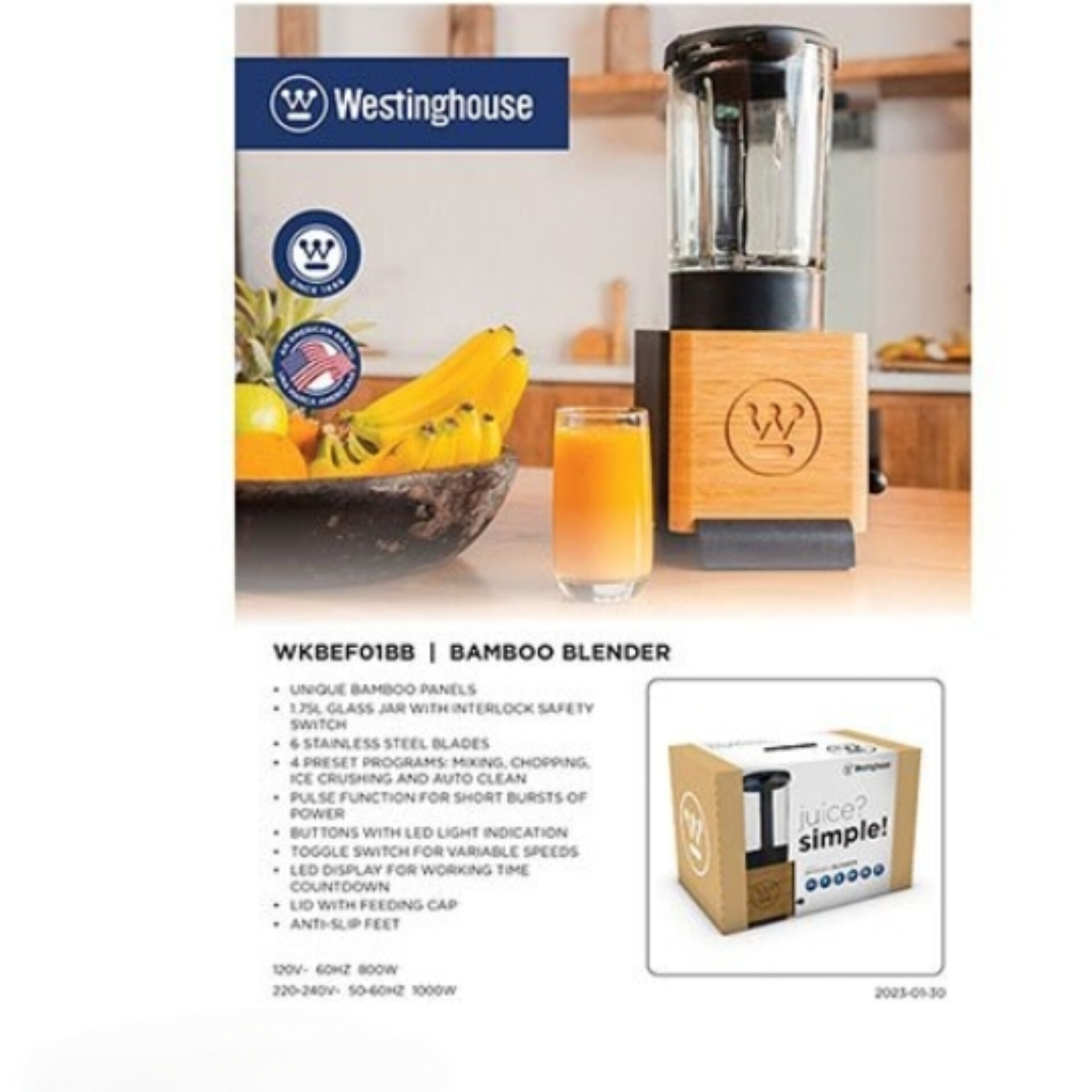 مخلوط کن حرفهای بامبو وستینگ هاوس F 01 BB – Westinghouse F01BB Bamboo Blender
